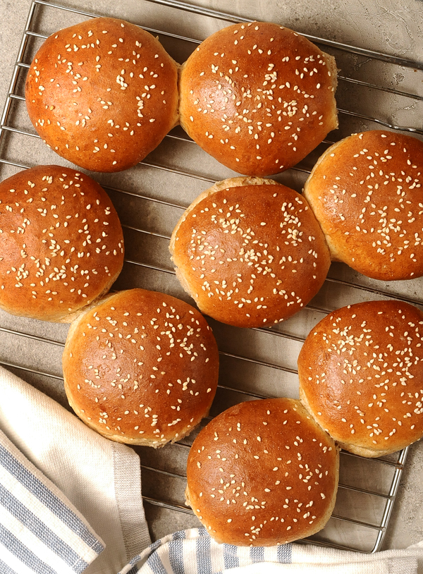 These buns can be used with your favorite cheeseburgers, veggie burgers, or sandwiches of any kind. They are best eaten fresh, so the recipe is intentionally written to make a small batch.